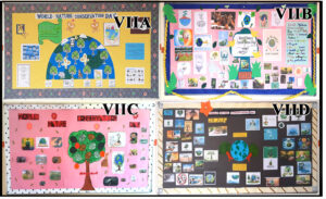 The theme chosen by Grades I & II was ‘Save Tiger’ as part of International Tiger’s Day which depicted the need to protect the Tiger Population, Grades III to V chose ‘World Population Day’ to showcase the statistics of World’s growing population and the need to control it. Grades VI to VIII picked ‘World Nature Conservation Day’ to spread awareness among the students for the need to Save our Resources. Grades IX to XII decided on ‘World Justice Day’ which calls for one and all to support justice, advance victim rights, and aid in the prevention of crimes that endanger the world’s peace, security, and well-being.